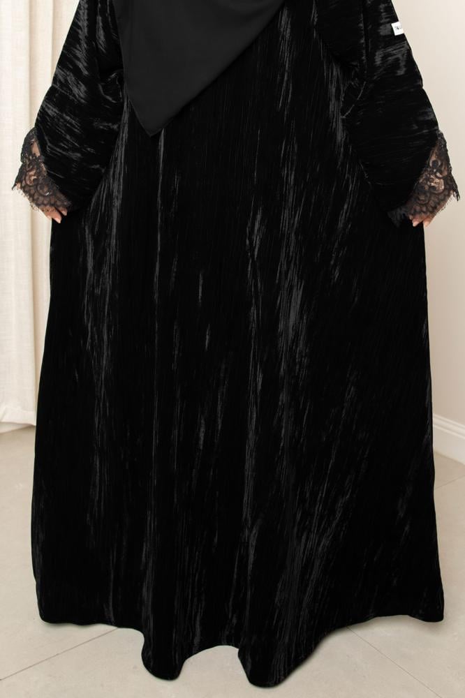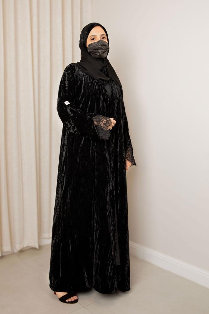 نوع القماش : مخمل مكسر مع دانتيل في الاكمام